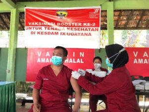 Denpasar, “TABLOIDNUSANTARA” – Guna mendukung program dan upaya Pemerintah Indonesia untuk mengendalikan kasus Covid-19 yang saat ini mengalami lonjakan atau kenaikan kasus yang cukup tinggi, Kodam IX/Udayana melalui Kesdam IX/Udayana menggelar Vaksinasi Booster tahap dua atau vaksin keempat.