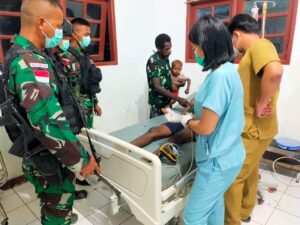 Dekay, “Tabloidnusantara.com” – Tim tenaga kesehatan dari Pos Kekey Satgas Yonif Raider 142/KJ memberi pertolongan pertama dan membantu Evakuasi mama Papua yang mengalami pingsan, bertempat di wilayah Kampung Kekey, Distrik Dekay, Kabupaten Yahukimo, Papua Pegunungan Tengah, Selasa (01/11/2022).