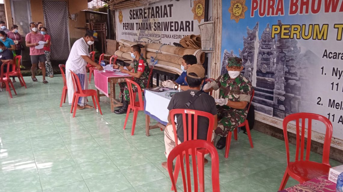 Dandim mengatakan bahwa Vaksinasi hari ini telah dilaksanakan di wilayah Koramil Kediri oleh Tim Vaksinator Mobile Kodim 1619/Tabanan di lingkungan perumahan Sriwedari, Banjar Batan Duren, Desa Cepaka, Kecamatan Kediri, dengan melakukan vaksinasi dosis lanjutan tahap 3 booster terhadap 180 orang masyarakat setempat.