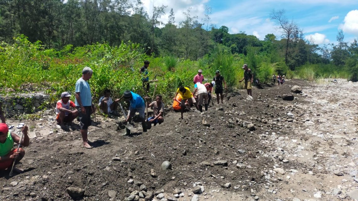 Kegiatan gotong-royong membuat saluran air bersama masyarakat perbatasan RI-RDTL merupakan salah satu bentuk kepedulian Anggota Satgas Yonif 743/PSY sebagai garda terdepan, guna membantu kesulitan warga dan mempercepat pembangunan di wilayah perbatasan.