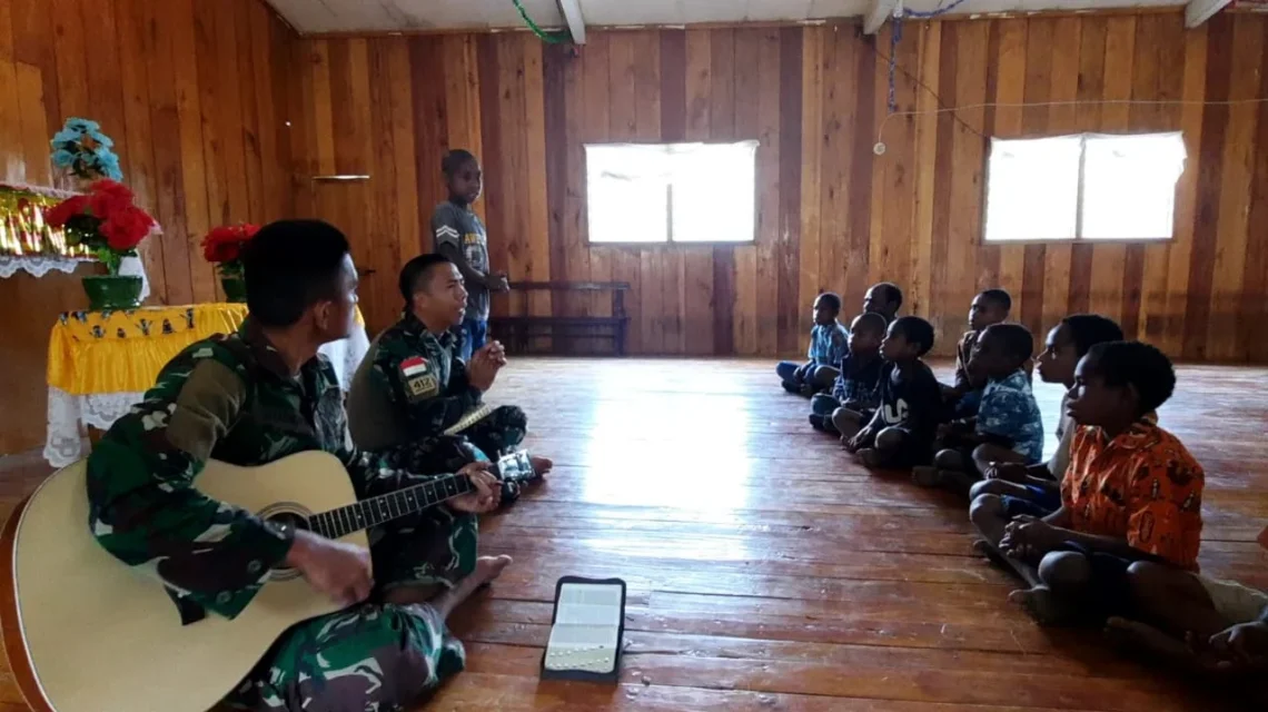 Program bimbingan Ibadah kepada anak-anak Jemaat Gereja yang ada di wilayah binaan Satgas, merupakan bentuk pembinaan teritorial yang sudah dilaksanakan Satgas Yonif 412 Kostrad sejak awal penugasan dimulai.
