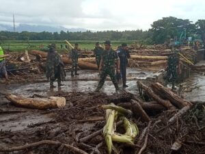 Mengingat curah hujan yang masih intensif, TNI-Polri dan Pemerintah Daerah menghimbau kepada masyarakat untuk selalu waspada guna menghindari bencana alam susulan meski arus air sungai tampak mulai surut. (Pendam IX/Udy)