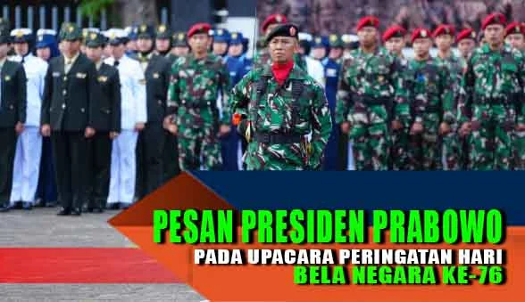 PESAN PRESIDEN PRABOWO PADA UPACARA PERINGATAN HARI BELA NEGARA KE-76 NEWS TABLOID NEWSS 1 tahun ago 323 0 PESAN PRESIDEN PRABOWO PADA UPACARA PERINGATAN HARI BELA NEGARA KE-76