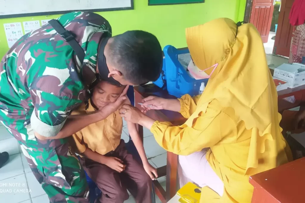 Vaksinasi bagi anak usia 6 – 11 tahun bertujuan sebagai upaya untuk menjaga imunitas tubuh dari virus covid-19 sehingga sinergi babinsa bersama dengan bhabinkamtibmas akan terus dilakukan dalam rangka percepatan vaksinasi.