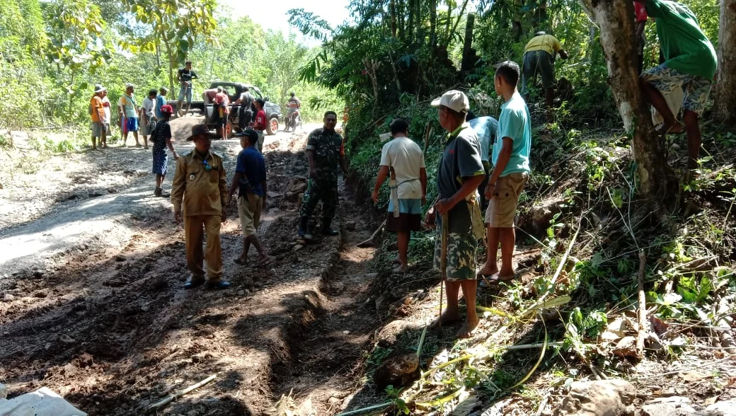 Seperti halnya yang dilakukan oleh Babinsa Desa Babahan Penebel Serka I Made Arka saat melaksanakan gotong-royong Karya Bhakti Perabatan Beton Jalan Pengrarungan, Desa Adat Babahan, Kecamatan Penebel, Kabupaten Gianyar, pada Rabu (20/4/2022).
