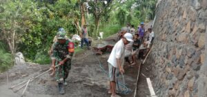 Karangasem – Proses pembangunan jalan rabat beton dalam rangka Karya Bhakti Semester I TA. 2022 Kodim 1623/Karangasem, di Dusun Tukad Buah, Desa Seraya Timur, Kecamatan/Kabupaten Karangasem, terus di percepat.