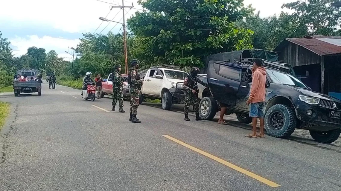Personel Satgas Pamtas RI-PNG Yonif 711/Rks Saat melaksanakan pemeriksaan salah satu mobil Bok yang melintas di jalan utama perbatasan RI-PNG