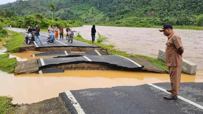 AKIBAT BANJIR JALAN PROVINSI PESISIR SELATAN TERPUTUS