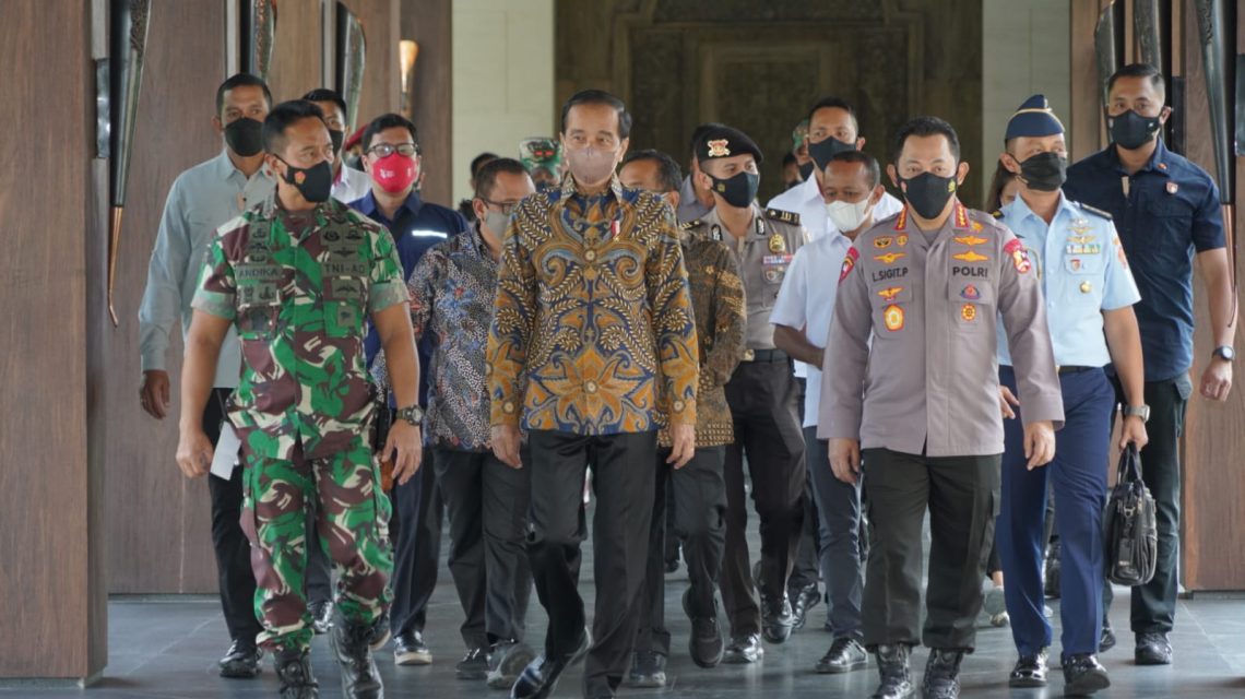 Badung, “TABLOIDNUSANTARA.COM” – Dalam lawatannya ke Bali, Panglima TNI Jenderal TNI Andika Perkasa mendampingi kunjungan kerja Presiden RI, Ir. H. Joko Widodo dalam rangka meninjau sejumlah fasilitas dan infrastruktur yang rencananya akan digunakan pada gelaran Konferensi Tingkat Tinggi (KTT) G20 nanti.