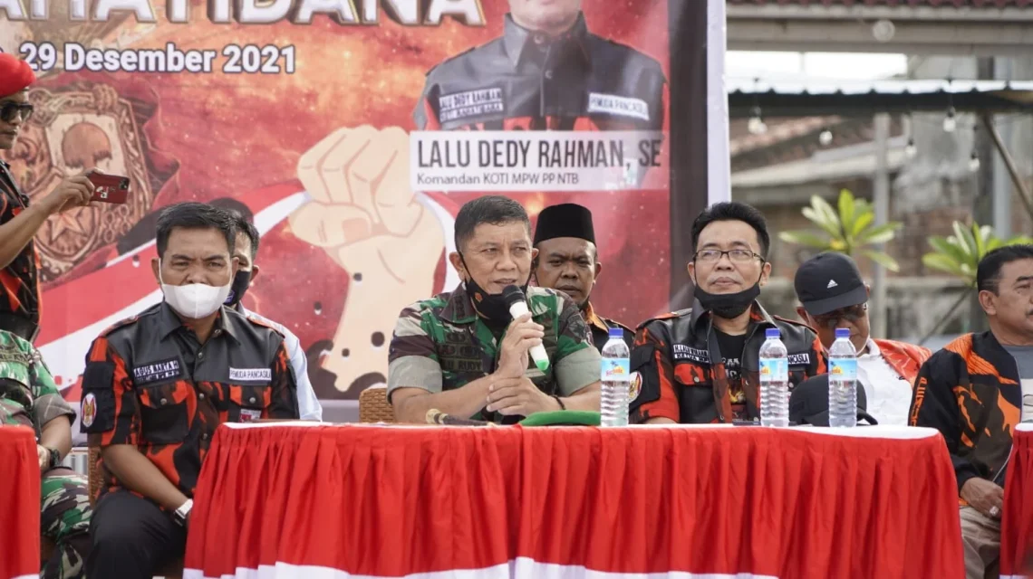 Mataram, “TABLOIDNUSANTARA.COM” – Komandan Korem 162/WB Kolonel Czi Lalu Rudy Irham Srigede, memberikan pembekalan tentang kebangsaan dan bela negara serta kondusifitas wilayah pada kegiatan Pendidikan Latihan Dasar (Diklatsar) Pelatihan Potensi Komando Inti Mahatidana Pemuda Pancasila di Pantai Boom Ampenan, Kota Mataram, pada Rabu (29/12/2021).