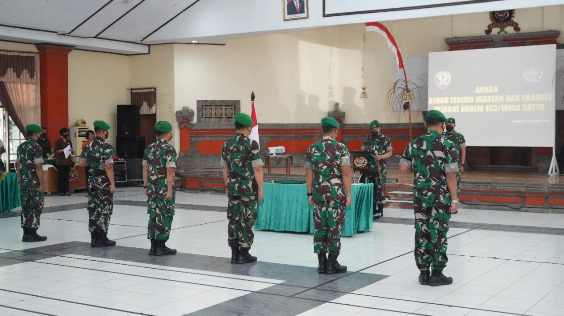 <span;>Tiga jabatan yang diserahterimakan antara lain Dandim 1611/Badung dari Kolonel Inf Made Alit Yudana kepada Kolonel Inf Dody Trio Hadi, S.Sos., Kepala Seksi Personel Korem 163/Wira Satya dari Kolonel Caj Didin Rahmat Solahudin, S.I.P., kepada Kolonel Arm Reza Nur Patria, M.Si.(Han)., serta Dandim 1623/Karangasem dari Letkol Inf Bima Santosa kepada Letkol Inf Sutikno Dody Triyo Hadi, S.Sos.