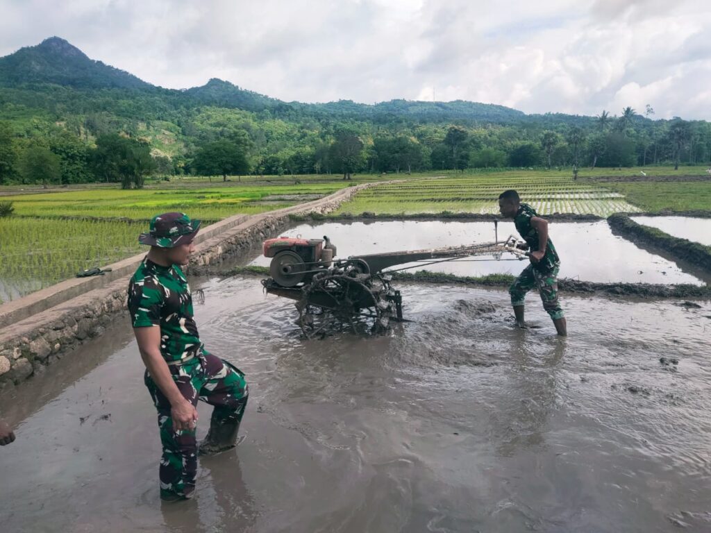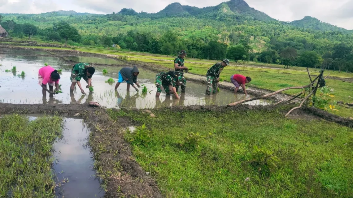 TTU, “TABLOIDNUSANTARA.COM” – Dalam rangka mendukung ketahanan pangan di Perbatasan, Prajurit Satgas Pamtas RI-RDTL Yonif 743/PSY Pos Baen membantu masyarakat menanam padi di Desa Sunkaen, Kecamatan Bikomi Nilulat, Kabupaten Timor Tengah Utara, pada Selasa (25/01/22).