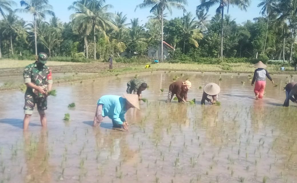 Pendampingan pertanian yang dimaksud Dandim 1615/Lotim yaitu seperti yang dilakukan Babinsa Tetebatu Koramil 1615-09/Sikur Sertu Made Suandana yang membantu menanam padi diatas lahan seluas 70 are milik warga binaanya di desa setempat.