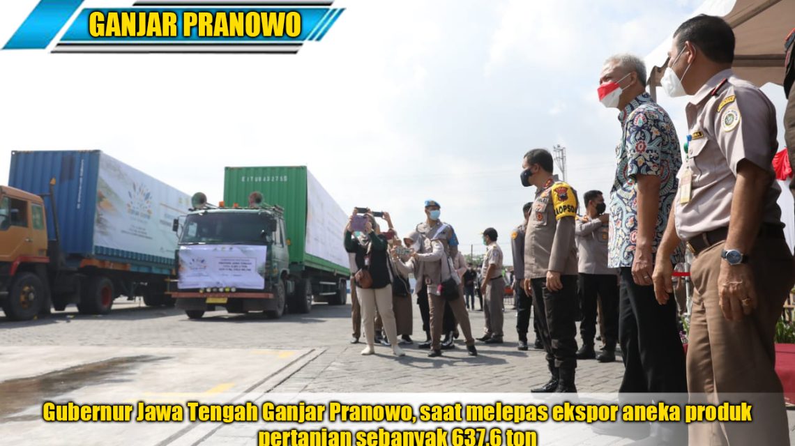 SEMARANG “TABLOIDNUSANTARA.COM” – Gubernur Jawa Tengah Ganjar Pranowo kembali melepas ekspor aneka produk pertanian sebanyak 637,6 ton, dengan total nilai ekspor Rp51 miliar, pelepasan dilakukan Pelabuhan Tanjung Emas Semarang, Jumat (31/12/2021).