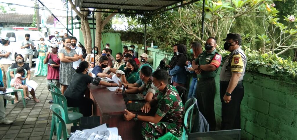 Badung, “TABLOIDNUSANTARA” – Upaya memutus rantai penyebaran Covid-19 serta mendukung program Pemerintah Pusat, Kodim 1611/Badung bekerjasama dengan Tim Nakes RSAD Udayana dipimpin oleh PNS Dr. Apri Dianti beserta staf, melaksanakan kegiatan vaksinasi Tahap 3 Booster Covid-19, bertempat di Koramil 1611-08/Kuta Selatan, Kabupaten Badung, pada Rabu (20/04/2022).