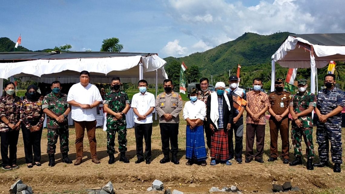 Acara peletakan batu pertama ditandai dengan penyerahan sertifikat secara simbolis dari Inspektorat V Itjen Kemhan RI Brigjen TNI Yos Triyoso, S.E., kepada Danrem 162/WB.
