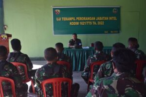 Disampaikan Dandim, ujian bagi para prajuritnya ini untuk mengasah, memelihara, dan meningkatkan kemampuan para prajurit Babinsa dan Intelijen yang bertugas di beberapa kecamatan/koramil wilayah Kodim 1621/TTS.