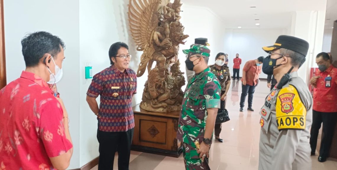 Badung, “TABLOIDNUSANTARA” – Dandim 1611/Badung Kolonel Inf Dody Triyo Hadi S. Sos M. Si bersama Kapolresta Denpasar AKBP Bambang Yugo Pamungkas., S.H., S.IK., M.Si, dan Kapolres Badung AKBP Leo Dedy Defretes, S.I.K., S.H., M.H., beraudensi dengan Pemerintah Kabupaten Badung dan diterima langsung oleh Bupati Badung I Nyoman Giri Prasta S.Sos., di Ruang Kerja Bupati Badung, Jalan Raya Sempidi, Kecamatan Mengwi, Kabupaten Badung, Selasa (29/03/22).