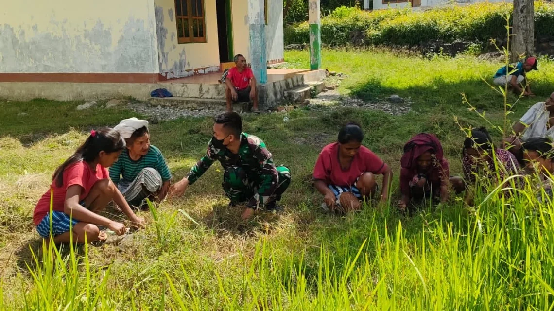 TTU, “TABLOIDNUSANTARA” – Dalam rangka menyambut hari raya Paskah di perbatasan, Prajurit Satgas Pamtas RI-RDTL Pos Nilulat bersama masyarakat membersihkan Gereja Katolik St. Maria Immaculata di Desa Nilulat, Kecamatan Bikomi Nilulat, Kabupaten Timor Tengah Utara, NTT, pada Sabtu (9/4/2022).