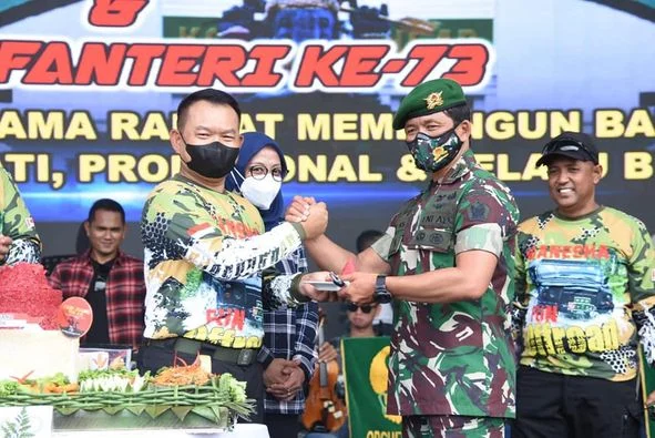 Bandung Barat, “TABLOIDNUSANTARA.COM” – Dalam rangka memperingati Hari Infanteri tahun 2021, Kepala Staf Angkatan Darat (Kasad) Jenderal TNI Dudung Abdurachman didampingi Dankodiklat TNI Angkatan Darat, Letnan Jenderal TNI A.M Putranto, membagikan sembako dan menyerahkan secara simbolis kepada masyarakat yang tinggal di sekitar daerah latihan Pusdikif Pussenif Kodiklatad, Cipatat, Bandung Barat, Jawa Barat Minggu (19/12/2021).