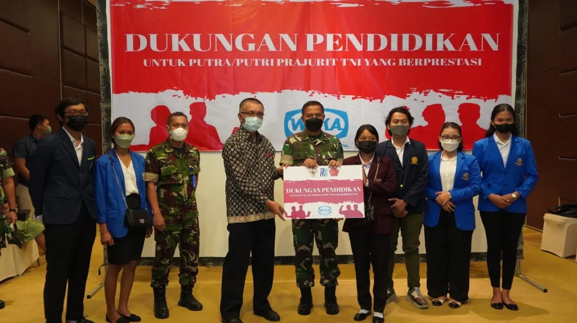 Melalui kerja sama TNI dengan BUMN dan Wijaya Karya (Wika) memberikan penghargaan dan Beasiswa Perguruan Tinggi bagi putra dan putri berprestasi Prajurit TNI AD dan TNI AU di Provinsi Bali, pada Kamis (24/2/2022) di Hotel Meruska Nusa Dua Kawasan Wisata Nusa Dua Los S-3, Benoa, Provinsi Bali.