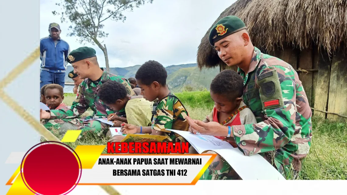 LANNY JAYA, “TABLOIDNUSANTARA.COM” – Tak sekedar jago di medan pertempuran, Prajurit Bharata Satgas Yonif MR 412 Kostrad juga piawai dalam menarik simpati anak anak melalui berbagai macam kegiatan yang bermanfaat guna mendukung pola pembinaan teritorial di daerah penugasan pegunungan tengah Lanny Jaya Papua.