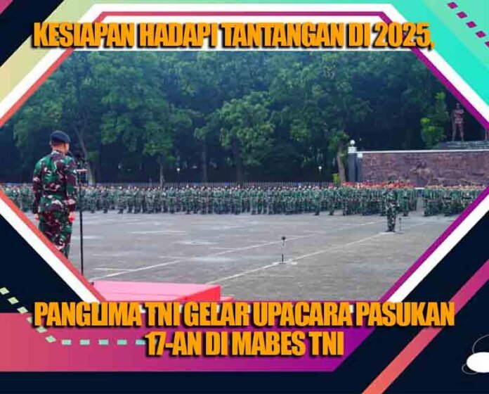 JAKARTA, tabloidnusantara.com – Dalam Rangka menghadapi tantangan di tahun 2025 ini, Panglima TNI Jenderal TNI Agus Subiyanto, S.E., M.Si, menggelar upaca pasukan 17-an yang bertempat di Lapangan Gedung B3 Mabes TNI, Cilangkap, Jakarta Timur, Jumat (17/01/2025).