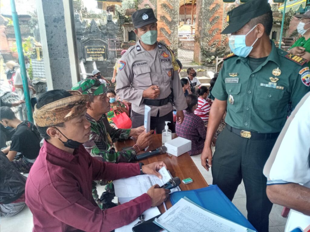 Kegiatan vaksinasi tersebut dipimpin oleh dr. Dewa Ngakan Putrayasa, serta dipantau langsung oleh Perwira Staf Kodim 1616/Gianyar, Muspika Sukawati beserta Prebekel Desa Batubulan Kangin.