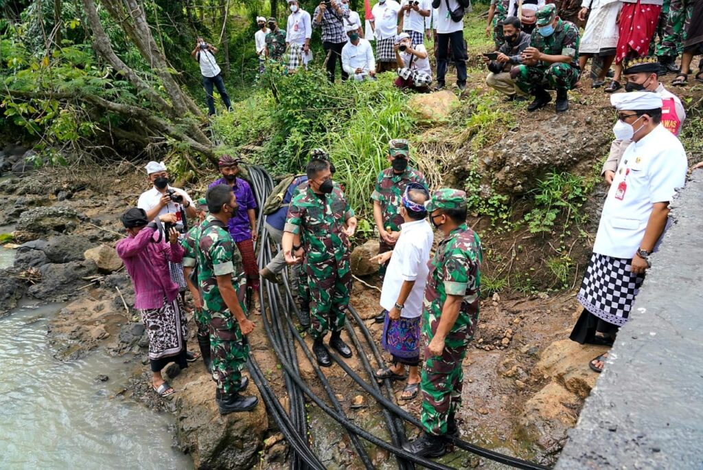 Peresmian Pompa Hidram untuk mengairi sekitar 160 hektar sawah bantuan dari Kementerian Pertanian yang dikerjakan oleh personel jajaran Kodam IX/Udayana dengan dibantu masyarakat setempat dalam upaya mengatasi kesulitan rakyat disekelilingnya ini berlangsung pada Selasa (15/2/2022).
