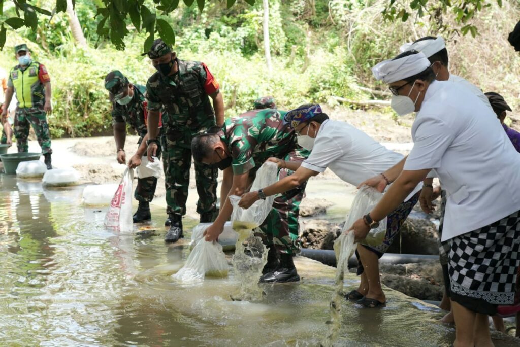 Acara presmian Pompa Hidram yang ditandai pengguntingan pita oleh Pangdam IX/Udayana bersama Gubernur Bali tersebut juga dilaksanakan penebaran 1.000 bibit Ikan Nila disekitar sungai pemasangan pompa. Nampak terlihat senyum bahagia dan rasa syukur masyarakat petani karena berkat Pompa Hidram Kodam IX/Udayana dapat menopang beban kekurangan air disubaknya. (Pendam IX/Udy)