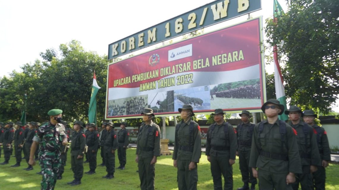 Mataram, “TABLOIDNUSANTARA” – Komandan Korem 162/Wira Bhakti membuka Pendidikan dan Pelatihan Dasar (Diklatsar) Bela Negara karyawan PT. Aman Mineral Nusa Tenggara (AMNT) Gelombang Kedua Tahun 2022 di Lapangan Gatot Subroto Makorem 162/WB, Jalan Lingkar Selatan, Kota Mataram, pada Senin (14/3/2022).