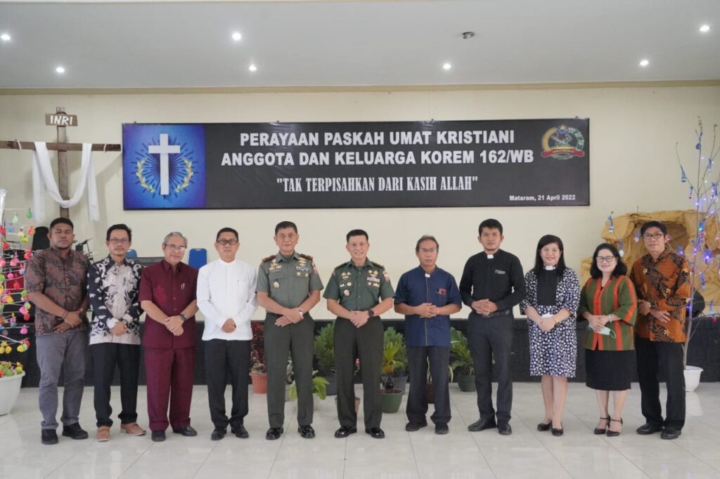 Mataram, “TABLOIDNUSANTARA” – Korem 162/Wira Bhakti melaksanakan peringatan Hari Raya Paskah, bertempat di Aula Sudirman Makorem 162/WB, Jalan Lingkar Selatan Mataram, pada Kamis (21/4/2022).