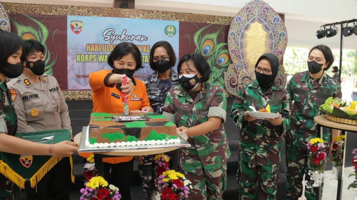 Gianyar, “TABLOIDNUSANTARA.COM” – Prajurit Kowad Praja Rakcaka jajaran Kodam IX/Udayana melaksanakan acara syukuran HUT Korps Wanita Angkatan Darat yang ke 60 tahun 2021, secara sederhana yang dilaksanakan di Krisna Oleh-oleh Blangsinga, Gianyar, pada Jumat (24/12/2021).