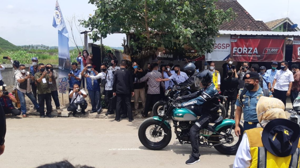 “Dengan telihatnya antusiasme semua masyarakat, Presiden RI yang sedang mengendarai Sepeda Motor miliknya itu melambaikan tangan kepada rakyatnya,” terang Kapenrem 162/WB.