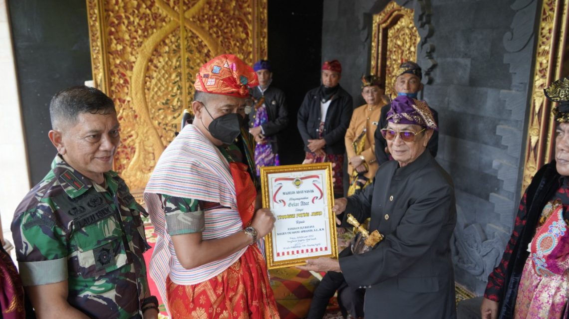 Saat penganugerahan gelar Adat Sasak tersebut, ditandai dengan penyerahan sebilah Keris (senjata tradisional Suku Sasak) dan piagam dari Majelis Adat Sasak oleh Ketua Adat Sasak kepada Pangdam IX/Udayana. (Pendam IX/Udy)
