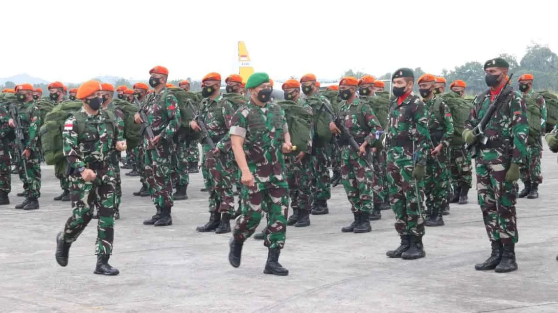 JAYAPURA, “TABLOIDNUSANTARA.COM” – Berkenaan dengan selesainya melaksanakan tugas di wilayah Papua, Satgas Kopasgat dilepas dengan rangkaian upacara pelepasan dipimpin Pangdam XVII/Cenderawasih Mayjen TNI Teguh Muji Angkasa, S.E., M.M bertempat di Baseops Lanud Silas Papare, Sentani, Kab. Jayapura, Selasa (15/2/2022).
