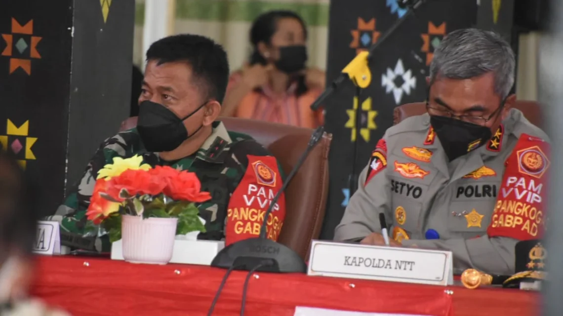 Manggarai Barat, “TABLOIDNUSANTARA.COM” – Pangdam IX/Udayana Mayor Jenderal TNI Sonny Aprianto, S.E., M.M., ikut hadir pada kegiatan Rapat Progres Penyelenggaraan MPP dan Pemberdayaan UMKM yang dipimpin oleh Wakil Presiden RI, KH. Ma’ruf Amin bersama dengan Forkopimda Provinsi Nusa Tenggara Timur dan Bupati/Walikota Se-Provinsi NTT, di Kantor Bupati Manggarai Barat, pada Senin (14/03/2022).