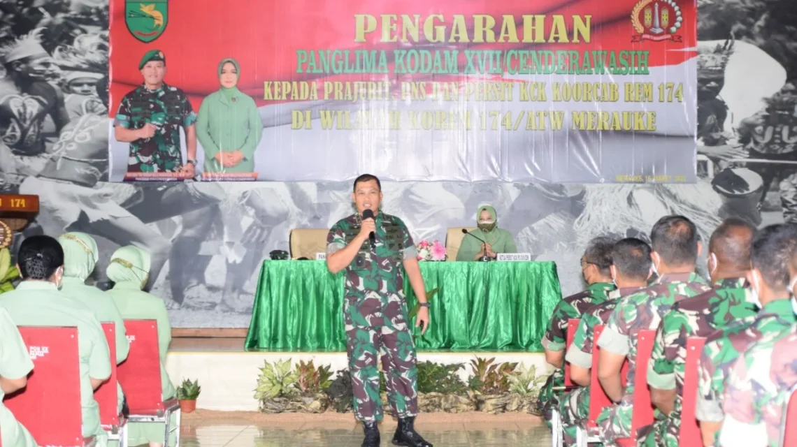 Dalam kunjungan perdananya di wilayah Korem 174/ATW, Pangdam XVII/Cenderawasih yang didampingi oleh Ny. Erny Teguh Muji Angkasa selaku Ketua Persit KCK Daerah XVII/Cenderawasih melaksanakan Baksos di Makodim 1707/Merauke Jln. Raya Mandala Kab. Merauke dengan membagikan ratusan paket Sembako kepada masyarakat Merauke meliputi Suku Marind, Suku Kimaam, Suku Muyu Mandobo, Suku Mappi dan Suku Asmat serta bingkisan kepada anak-anak dari Panti Asuhan Kartini dan dari Pesantren Hidayatullah. Rabu (16/3/2022).