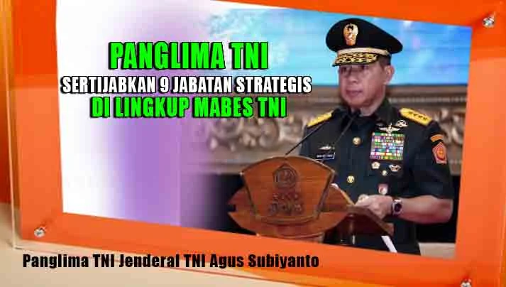 JAKARTA, “tabloidnusantara.com” – Panglima TNI Jenderal TNI Agus Subiyanto memimpin upacara Serah Terima Jabatan (Sertijab) 9 jabatan strategis di lingkup Mabes TNI di Aula Gatot Soebroto, Mabes TNI Cilangkap, Jakarta Timur, Selasa (07/01/2025).