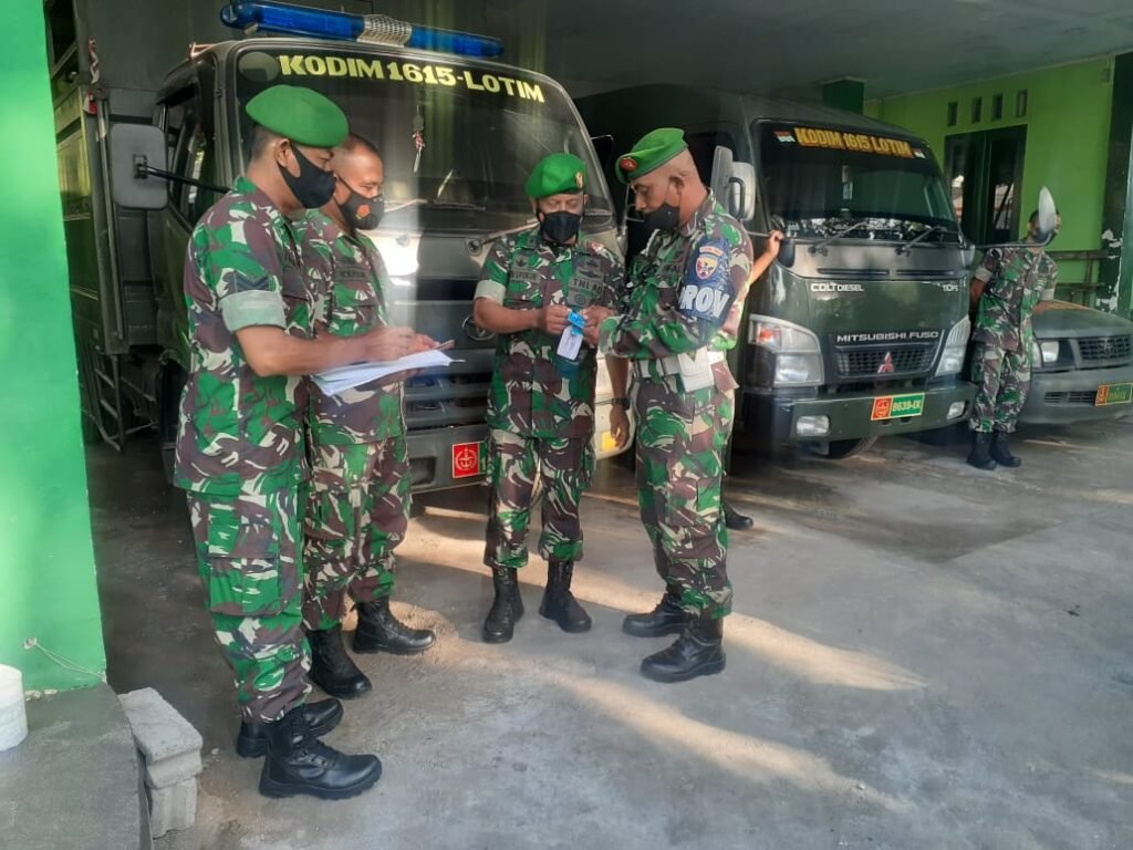 Pemeriksaan dan pengecekan kondisi kendaraan dipimpin langsung oleh Kepala Staf Kodim 1615/Lotim Mayor Inf Lalu Muhammad Syukur, S.Ag., bersama Pasi Intel Kodim Lettu Chb Ismail dan anggota.
