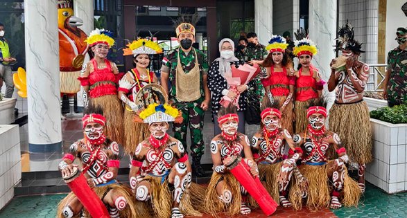 “Rangkaian kegiatan setelah tiba depan VIP Room Bandara Sentani, disambut tari-tarian adat dan pengalungan Noken,” tambah Kapendam.
