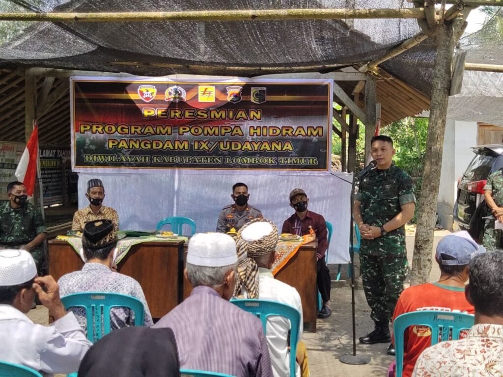 Dandim 1615/lotim dalam sambutannya menyampaikan peresmian pompa Hidram ini sebagai wujud kehadiran pemerintah dalam memenuhi kebutuhan air bersih masyarakat.