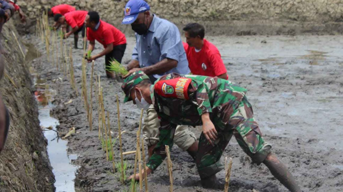 WAMENA, “TABLOIDNUSANTARA.COM” – Dandim 1702/Jayawijaya yang diwakili Kapten Inf Sony Teguh Bahtiar, S.T.Han., bersama Pemerintah Kabupaten Jayawijaya melaksanakan penanaman padi perdana di Distrik Assologaima, Kab. Jayawijaya.