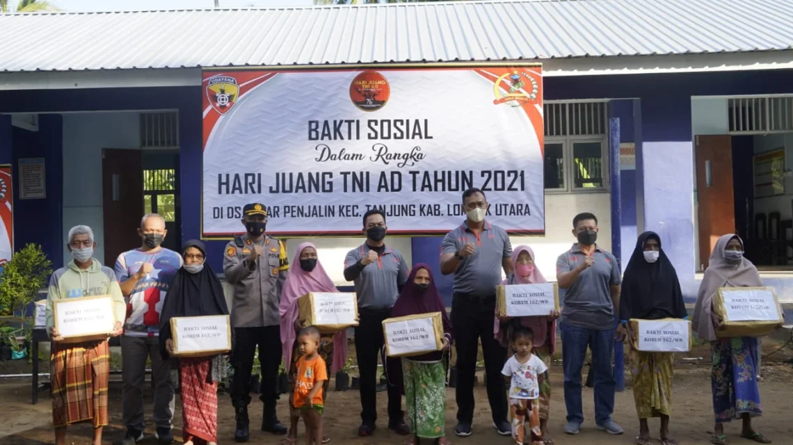 Lombok Utara, “TABLOIDNUSANTARA.COM” – Rangkaian kegiatan yang dilaksanakan Jajaran Korem 162/Wira Bhakti dalam rangka memperingati Hari Juang TNI AD ke-76, salah satunya Bakti Sosial yang berlangsung di SD Negeri 4 Desa Sigar Penjalin, Kecamatan Tanjung, Kabupaten Lombok Utara, Sabtu (18/12/2021).