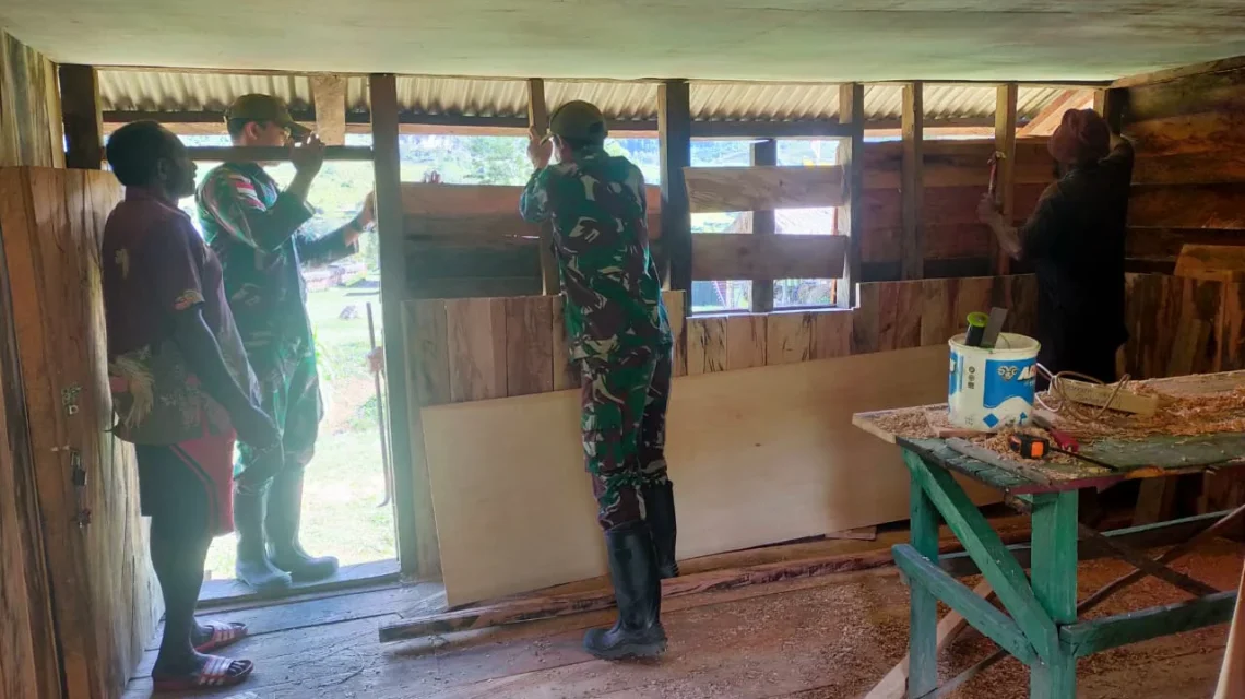 LANNY JAYA, “TABLOIDNUSANTARA.COM” – Prajurit Satgas Yonif MR 412 Kostrad hadir di tanah Papua membawa kedamaian dan memberi solusi dalam kehidupan bermasyarakat, salah satunya dilakukan oleh Anggota Satgas Pos Malagayneri dengan membantu memperbaiki rumah tinggal warga yang ada di Kampung Lowanom Distrik Malagayneri Kabupaten Lanny Jaya.
