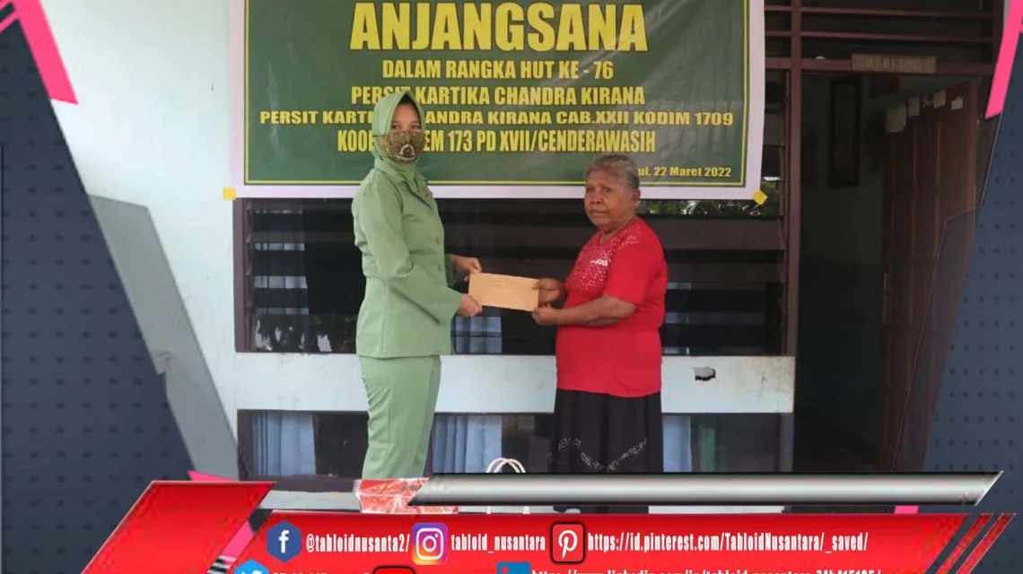 YAPEN, “TABLOIDNUSANTARA.COM” – Dalam rangka menyambut Peringatan Hari Ulang Tahun Persit (Persatuan Istri Tentara) ke-76 Tahun 2022, Persit Kartika Chandra Kirana Cabang XXII Kodim 1709, menggelar Anjangsana sekaligus memberikan Bantuan Sembako kepada Panti Asuhan dan Warakawuri di wilayah Kodim 1709/Yawa Kab. Kep. Yapen, Rabu (23/03/2022).