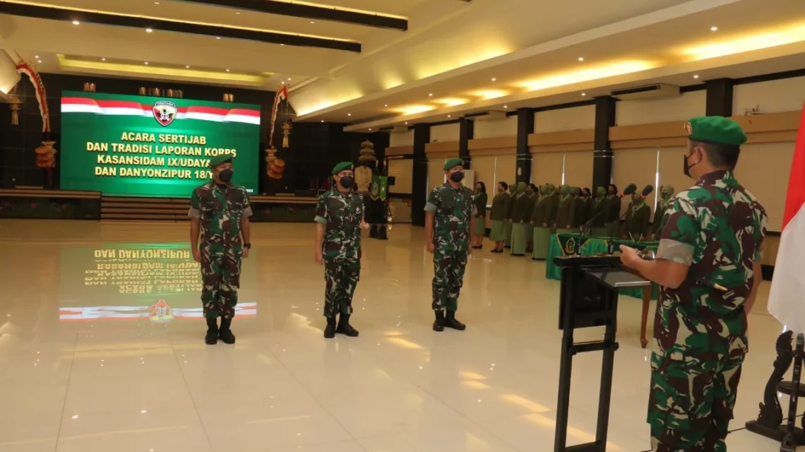 Denpasar, “TABLOIDNUSANTARA.COM” – Pangdam IX/Udayana Mayjen TNI Maruli Simanjuntak, M.Sc., memimpin serah terima jabatan (Sertijab) Danyonzipur 18/YKR dan penyerahan jabatan Kasansidam IX/Udayana, bertempat di Lantai III Aula Makodam IX/Udayana, Jalan Udayana, No. 01, Denpasar, pada Jumat (7/1/2022).