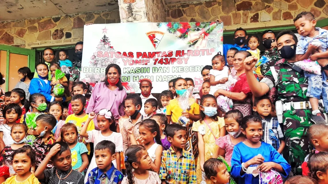 Wadansatgas Pamtas RI-RDTL Yonif 743/PSY Mayor Inf Faishal Riza dalam keterangannya, pada Minggu (26/12/21), mengatakan bahwa dibulan yang penuh berkah ini, Satgas Pamtas RI-RDTL Yonif 743/PSY terus berbagi kasih dengan masyarakat diperbatasan terutama kepada Anak-Anak.