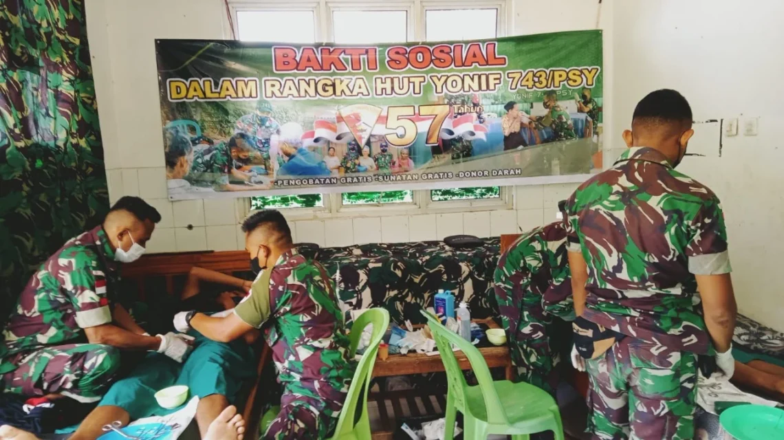 Masih dalam rangka rangkaian memperingati HUT Yonif 743/PSY ke 57, pemberian Vaksinasi dan pembagian sembako kepada masyarakat Desa Sunsea kali ini dilaksanakan oleh Pos Nelu yang dipimpin langsung oleh Dankipam IV Lettu Inf Rudi Megianto.