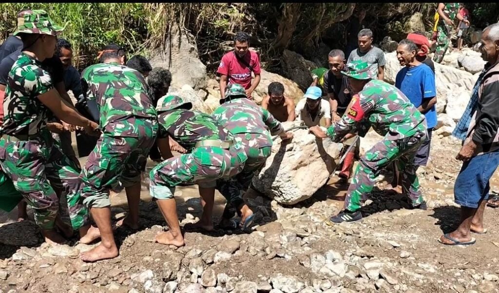 Dansatgas Pamtas RI-RDTL Yonif 743/PSY Letkol Inf Andi Lulianto dalam keterangannya di Makotis, mengungkapkan bahwa anggota Pos Manusasi bersama warga bergotong royong memperbaiki jalan yang rusak akibat banjir, yang merupakan penghubung di Desa Manusasi.